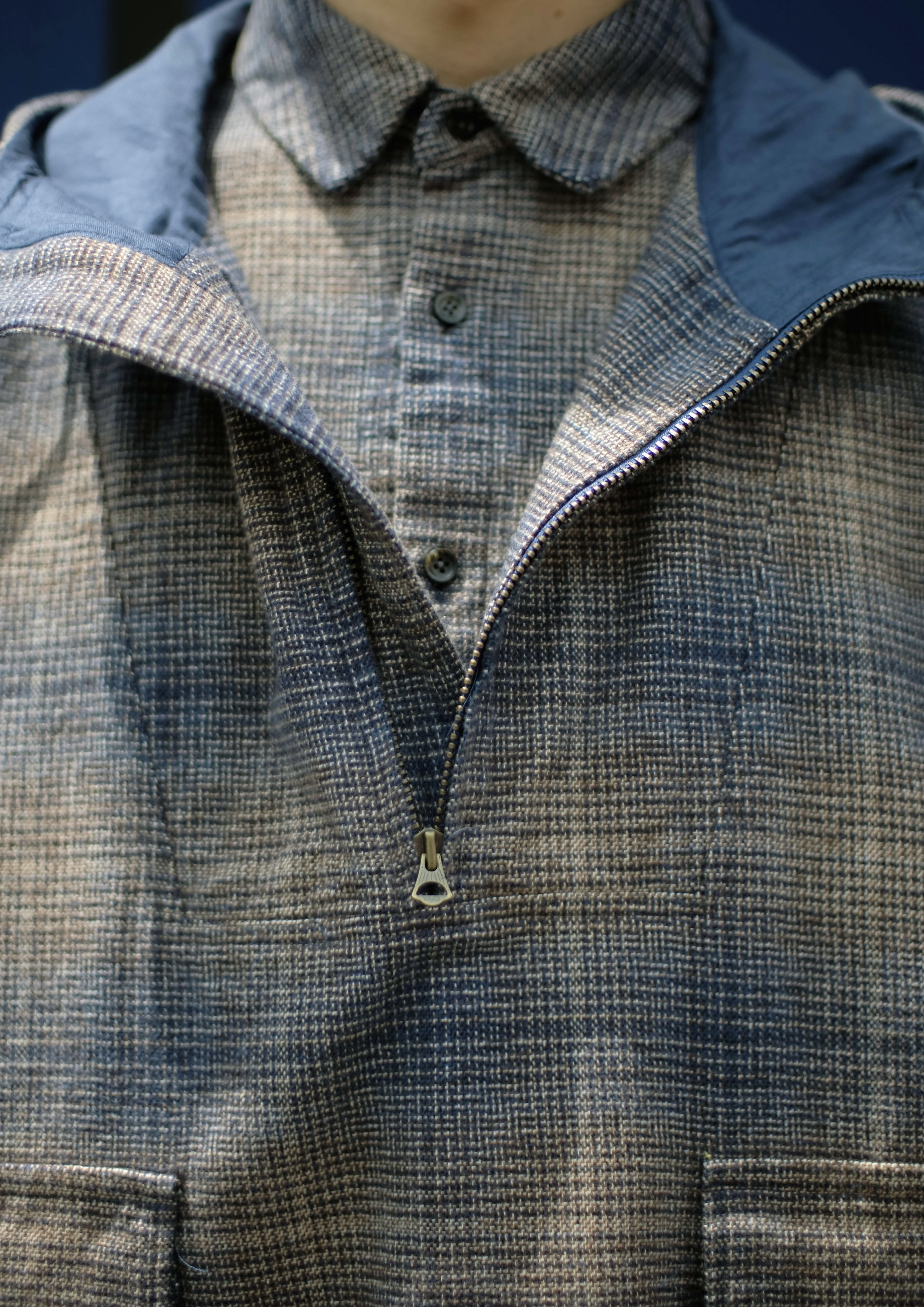 Inner Cotton Convertible Collar Coat × L/S Indigo Shirt × Inner Cotton Straight Pants