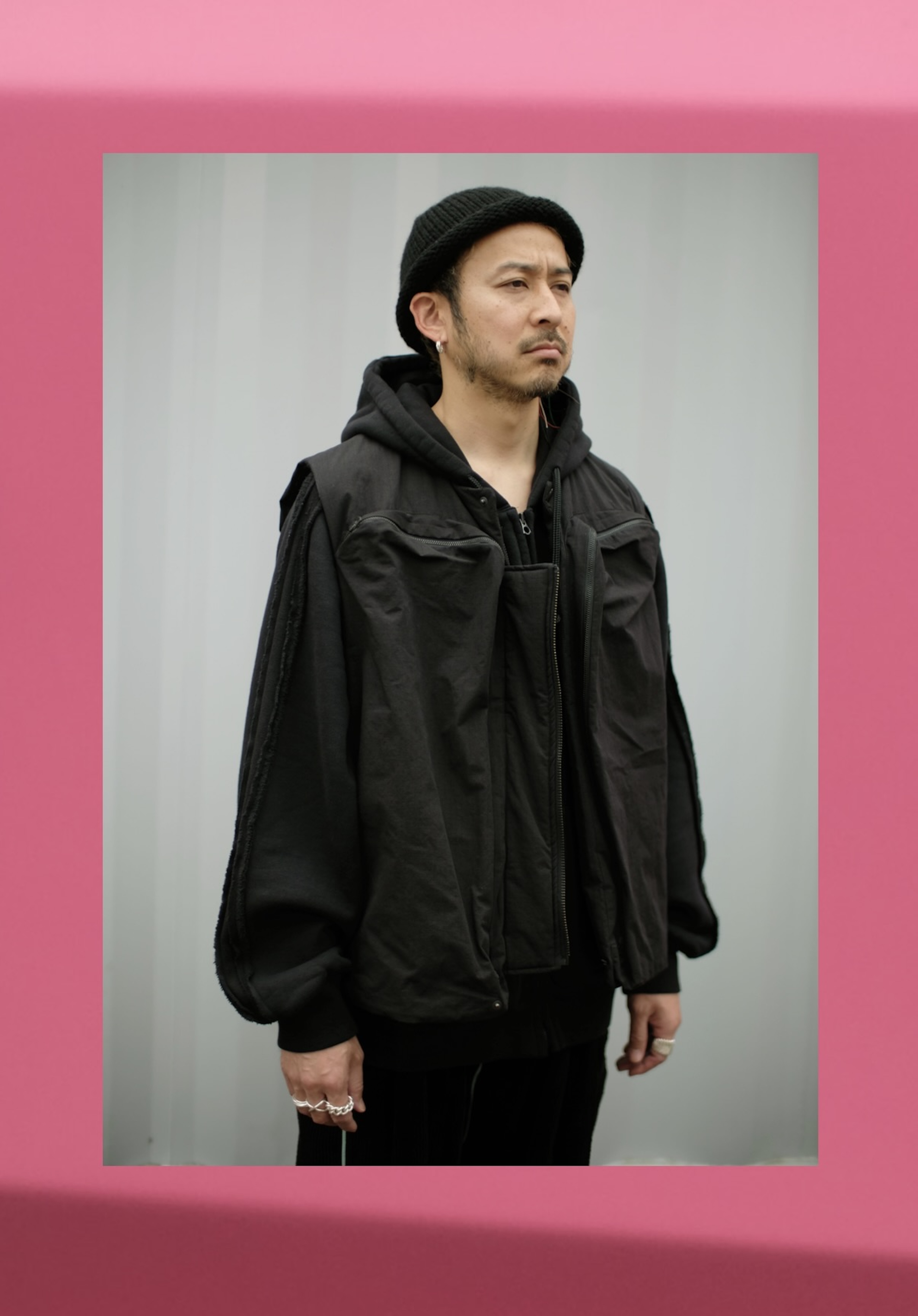 Melton Hat × Wool Long Hoodie × Quilting Slit Pants