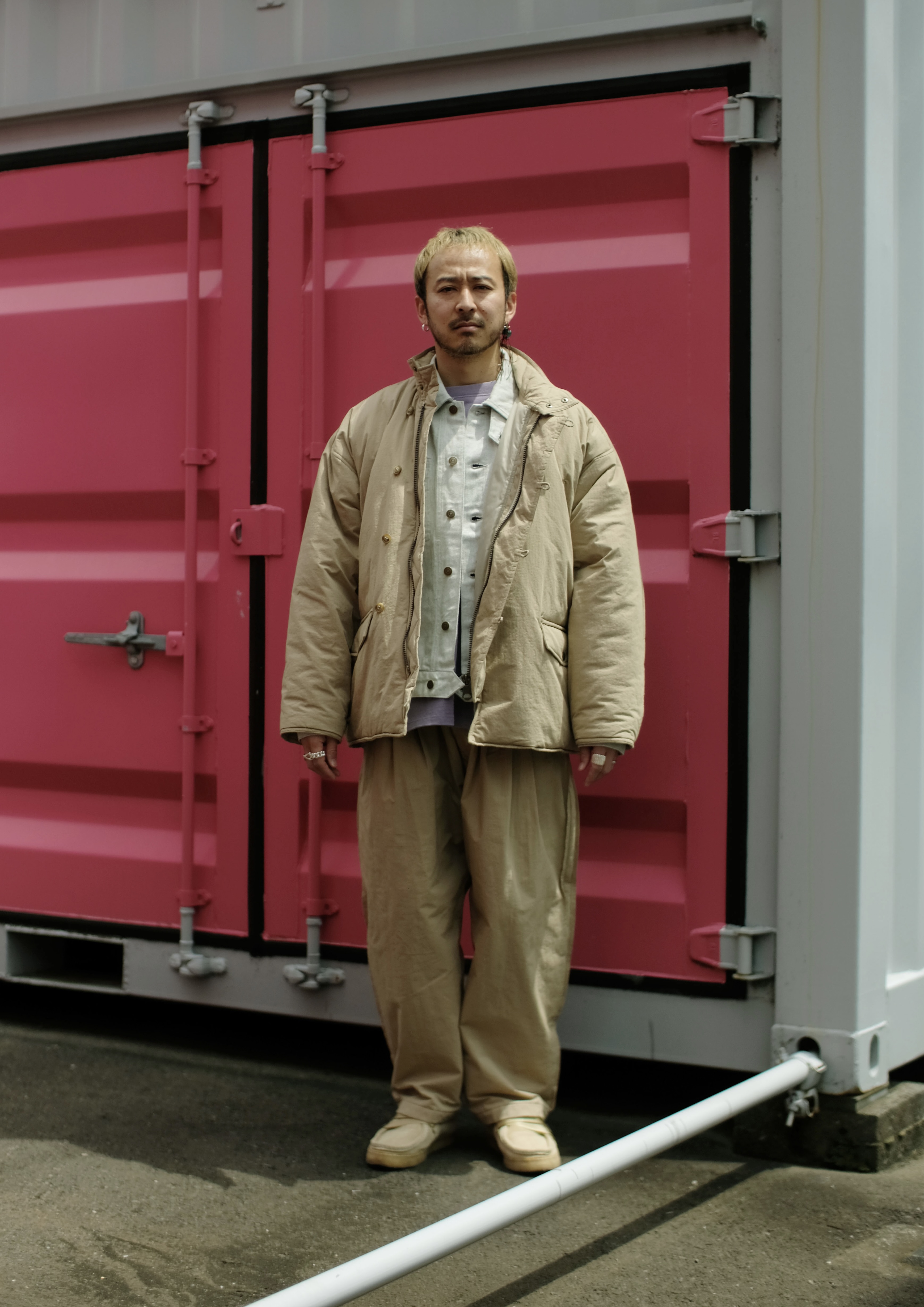 Pile Vest × L/S Dolman Sleeve Shirt × Twill Slim Pants