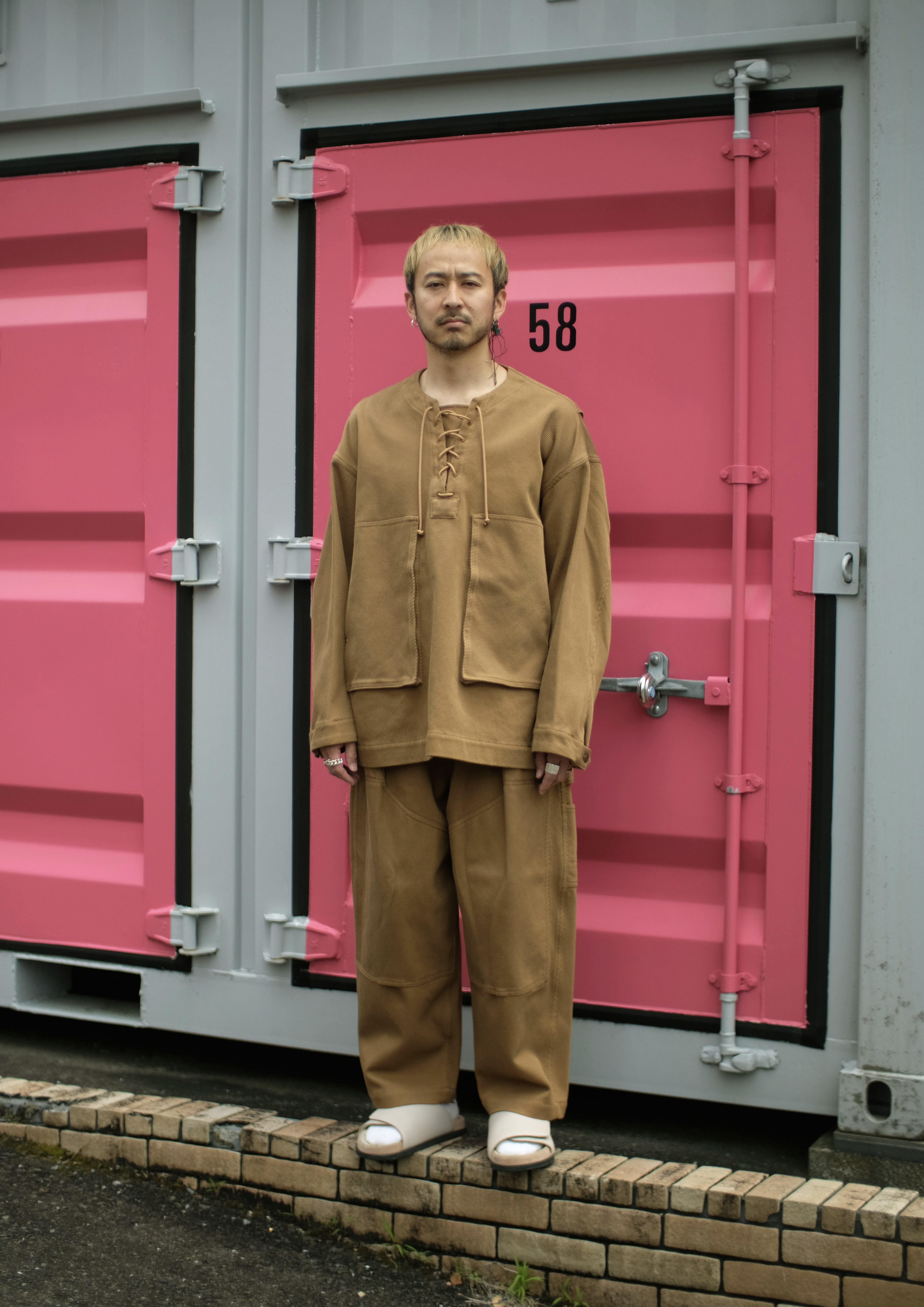 S/S Cotton Shirt × Tencel 2tuck Pants × Leather Sandals