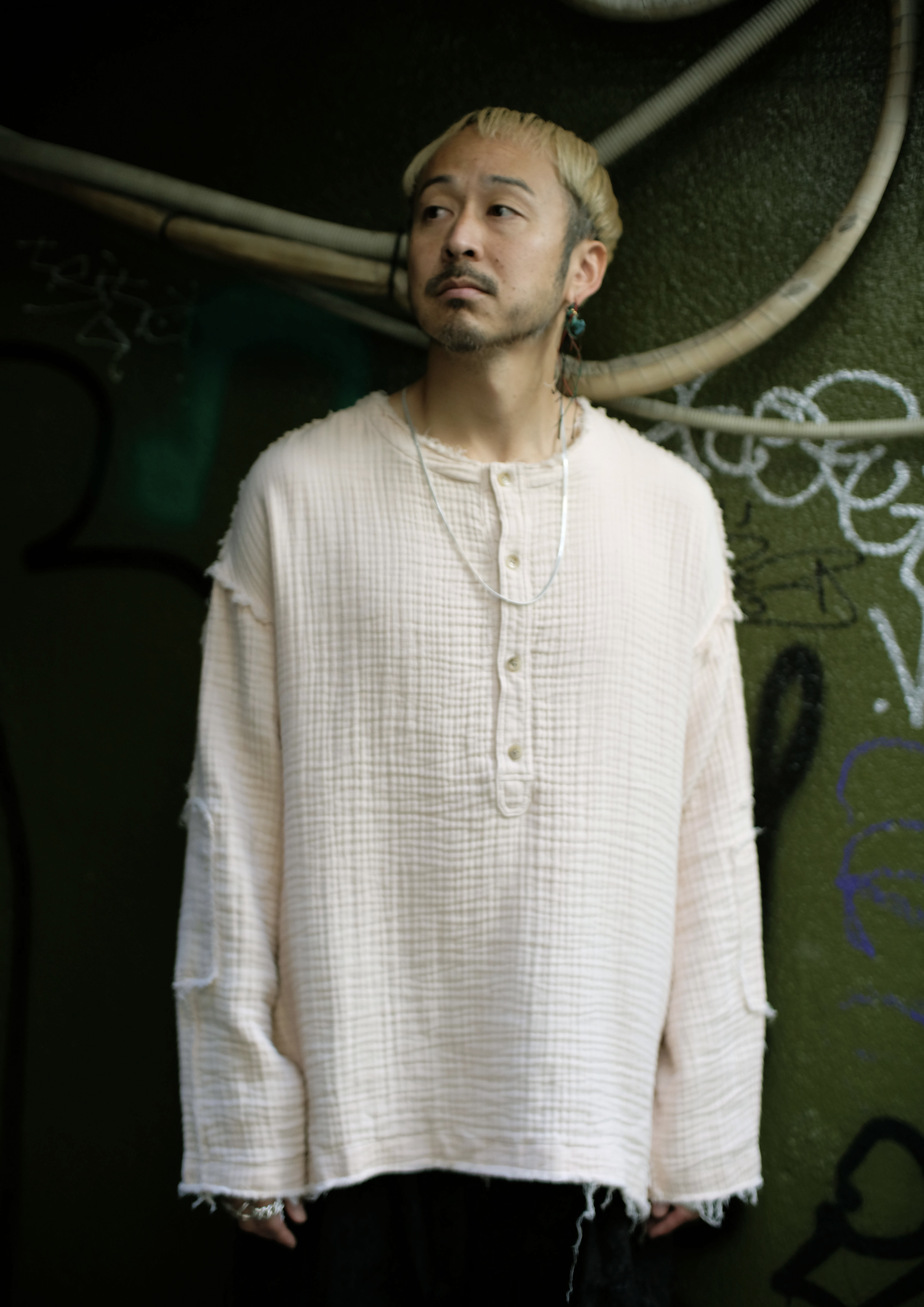 Silver Cross Pierce・Heavy Drill No-Collar Pullover・L/S Cup Shoulder T-Shirt・Serge Big Balloon Pants・Silver Cross-Over Ring・Silver Furrow Ring