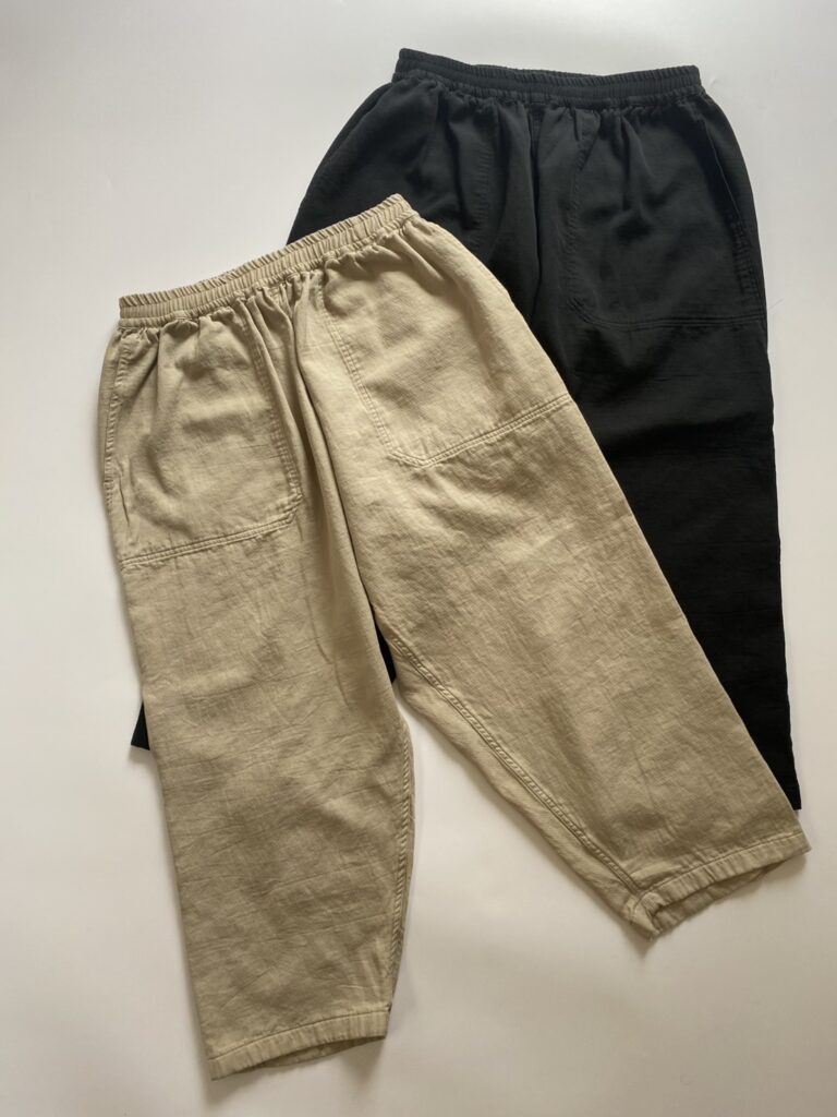 パンツですが、こちらのモデルは両脇を輪(接ぎを取らない仕様)にすることにより、